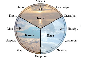 Время года, климат и время дня, а также географическое положение оказывают сильнейшее воздействие на человеческий организм. Это происходит из-за активизации в разное время и в разных местах элементов ваты (воздуха), питты (огня) и капхи (воды).